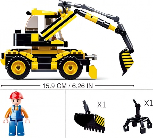 See Sluban Town seeria komplekt rõõmustab kõiki väikeseid ehitajaid. Kollaste ja mustade klotsidega ratasekskavaator pakub toimivaid elemente, nagu liikuv nool kopaga, minifiguurile mõeldud kabiin ja tugevad rattad. Tänu kvaliteetsele ohutust ja vastupidavust tagavale ABS-plastile peab see vastu ka intensiivsele mängule.