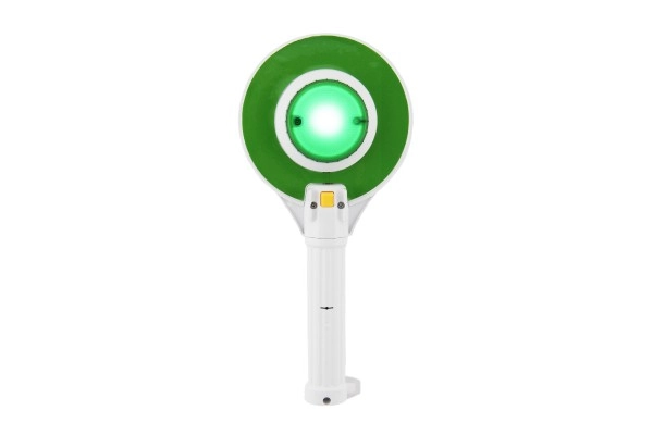 See plastikust politsei peatumismärk on varustatud sisseehitatud valgusega, mis kumab ühel poolel punaselt ja teisel roheliselt, aidates lastel õppida liiklusohutuse põhialuseid.