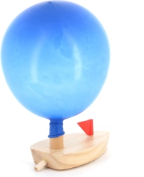 Too mängulisust koju selle puidust paadikesega, mida käitab õhupall. Lapsed saavad hõlpsalt õhupalli täis puhuda, selle paadile kinnitada ja vaadata, kuidas see edasi liigub. See lihtne, kuid tõhus lahendus õpetab lastele liikumise põhimõtet ning pakub samal ajal palju lõbu. Ideaalne mänguasi lõbusaks ajaks vannis või basseinis.