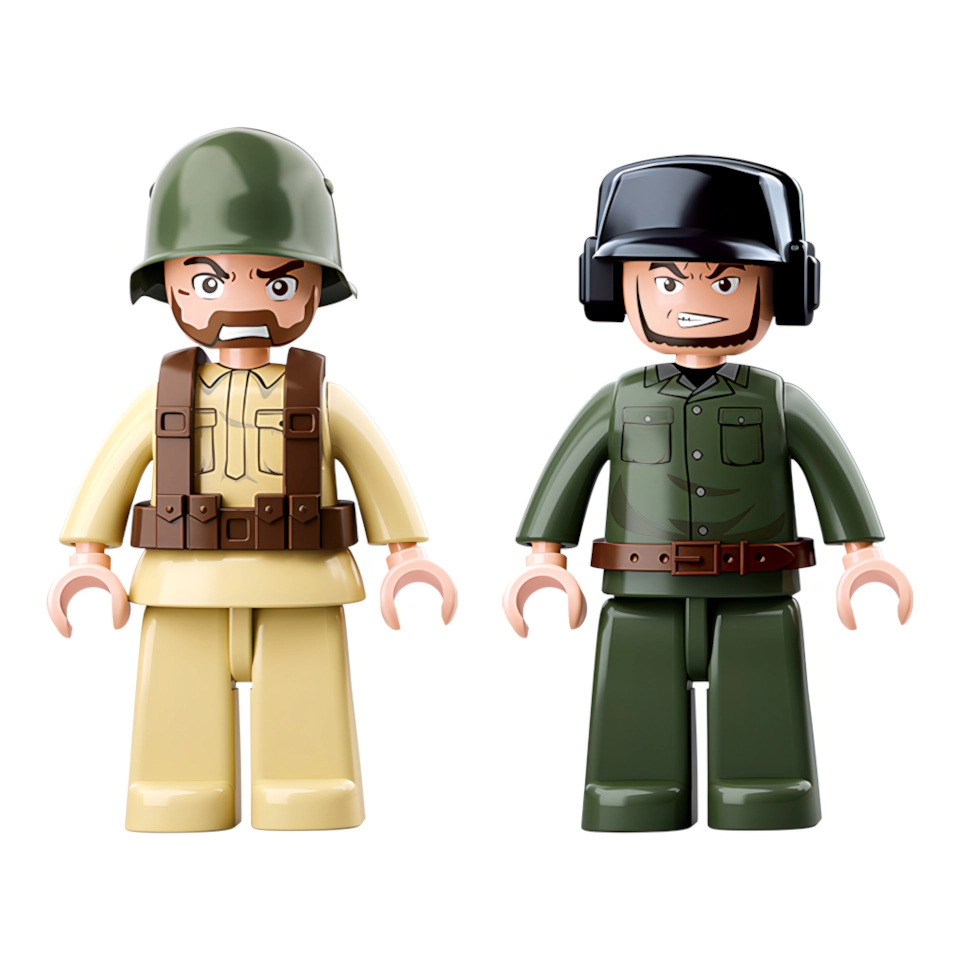 Kaks sõduri figuuri liikuvate jäsemetega, mis lisavad mängule interaktiivsust.