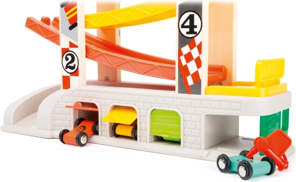Rada on loodud arendama rollimänguoskusi ja peenmotoorikat, samal ajal kui lapsed võistlevad nelja eri värvi väikeautoga. Lisaks võimaldab praktiline parkimis- ja hoiustamissüsteem väikestel võidusõitjatel oma autod pärast võistlust hõlpsalt ära panna.