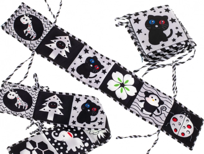 Kontrastne senso-motoorne raamat, mis on loodud voodikaitseks, on ideaalne valik lastele, kes alustavad maailma avastamist. Akordionikujuline raamat saab kergesti paeltega voodi külge kinnitada, pakkudes nii lõbu kui ka turvalisust.