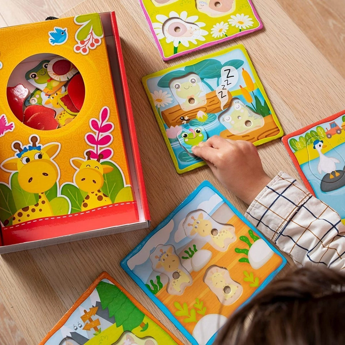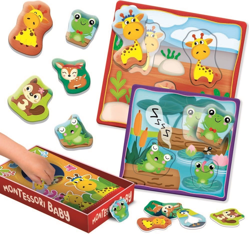 Avastage mänguline didaktiline komplekt, kus lapsed panevad pojad nende ema ja isa juurde, õpivad tundma loomi ja nende loomulikku elukeskkonda ning harjutavad samal ajal kannatlikkust, tähelepanu ja peenmotoorikat. Komplekt on mõeldud kõige pisematele – lihtsad kontuuriga tükid püsivad hästi käes ja on kergesti paigutatavad.