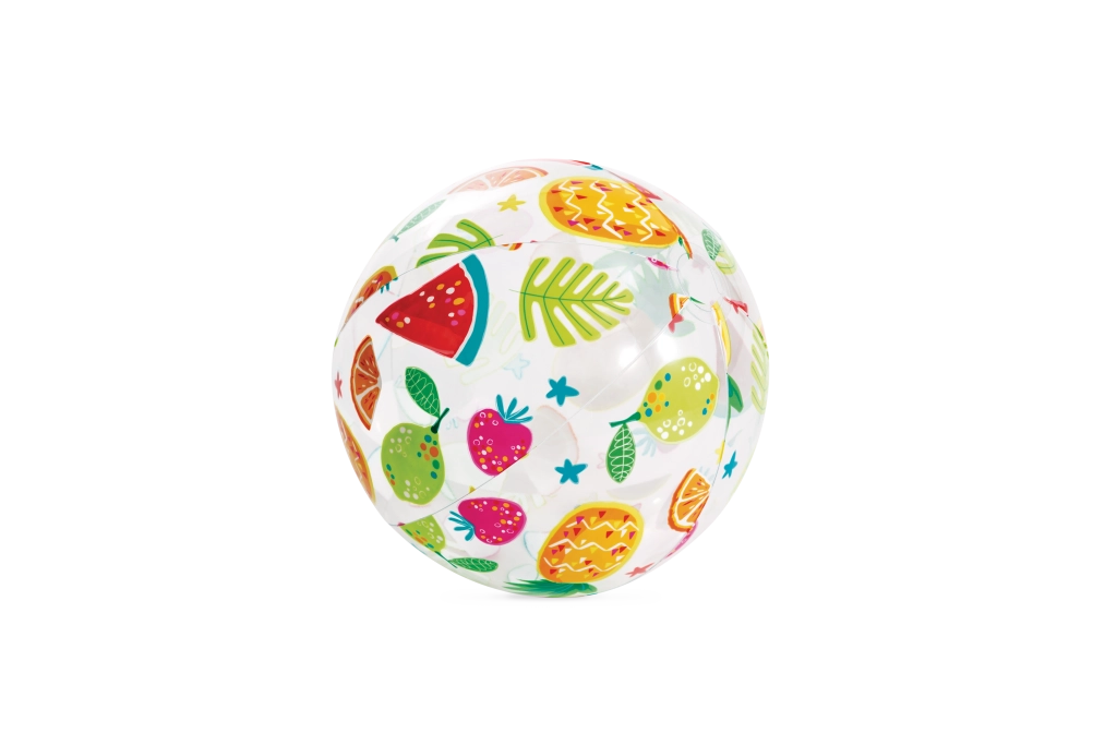 Läbipaistev pall on kaunistatud värviliste puuviljade, jäätiste, kalade ja mereteemaliste mustritega. Motiiv valitakse juhuslikult, kuid tagab alati rõõmsa välimuse ja hea nähtavuse nii vees kui rannas.