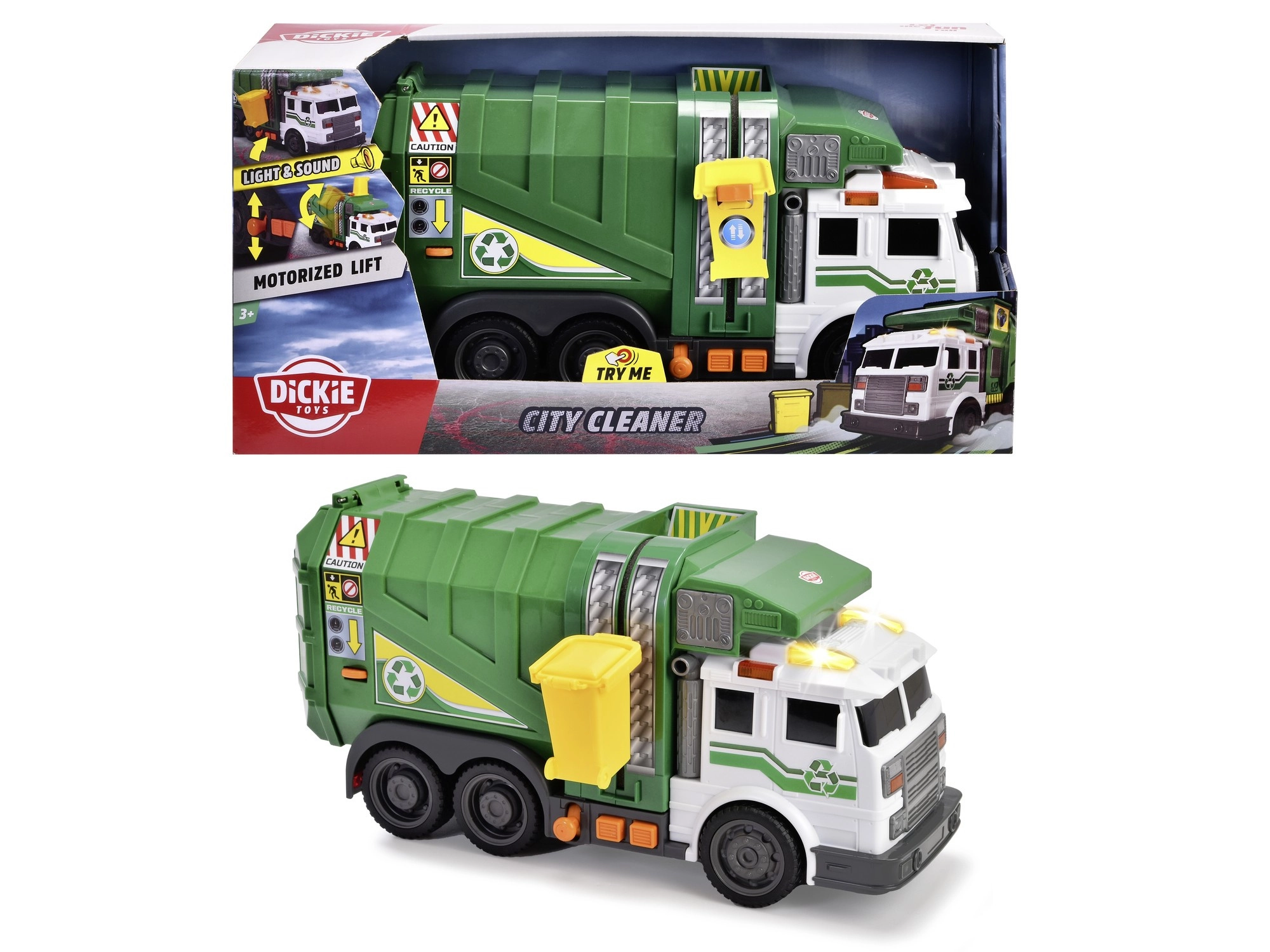 Realistlik roheline City Cleaner prügiveok firmalt Dickie Toys vaimustab lapsi tulede ja helidega, toimiva kollase prügikasti tõstukiga ning liikuvate osadega. Suurepärane mänguasi prügiveo mängimiseks, taaskasutuse õppimiseks ja peenmotoorika arendamiseks.
