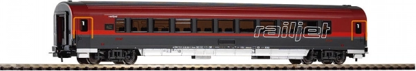 Detailne 1. klassi reisivagun Ampz Railjet ÖBB kaasaegses värvis ja trükis. Suurepärane täiendus terviklikele Railjeti koosseisudele, pakkudes truut H0 mõõtkava teostust, ühilduvust NEM 362 standardiga ning lüüksideme kinemaatikat sujuvaks sõiduks ka väiksematel raadiustel.