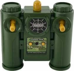 Nupuga FIRE aktiveerid heli- ja valgusefektid. Pöörlevat torni juhitakse ülemiste vasak/parem nuppudega täpseks sihtimiseks.