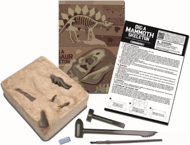 See interaktiivne kaevamiskomplekt muudab teie laua pisikeseks paleontoloogiliseks leiukohaks. Kaasasoleva peitli ja pintsliga toovad lapsed ettevaatlikult nähtavale üksikud luud ning panevad neist kokku detailse mammuti luustikumudeli. Lõbu ja õppimine käivad käsikäes ning tulemuseks on muljetavaldav eksponaat lastetoas.