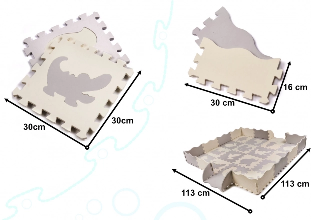 Pehme laste vahtpuslematt eemaldatavate kujunditega loob mänguks turvalise ja loova ala. Tõstetud servade abil saab kokku panna aediku, mis hoiab mänguasjad sees. Matt on veekindel, libisemiskindla pinnaga ja neelab lööke, mistõttu sobib ideaalselt esimesteks sammudeks. Neutraalne hall ja ecru värv sobitub igasse interjööri.
