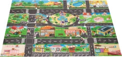 Matt kujutab linnamaastikku teede, hoonete ja parkidega, mis toetab laste kujutlusvõimet ja loovust mänguasjadega mängides.