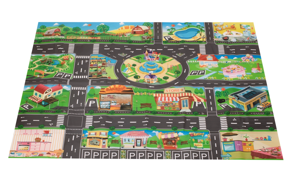 Suur veekindel laste mängumatt linnatrükiga on ideaalne loovaks mänguks. See on valmistatud plastikust, mis meenutab ceratat, mistõttu on seda lihtne hooldada ja puhastada. Tänu väikesele kaalule ja kokkupandavusele on seda mugav kaasas kanda ja kasutada ka väljaspool kodu, näiteks piknikul.