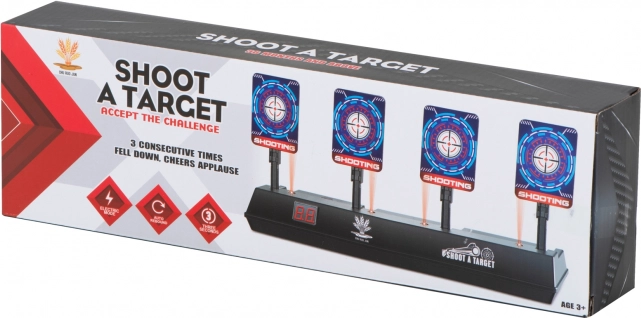 LED-ekraan loendab punkte selgelt ning pärast kõigi nelja sihtmärgi tabamist tõusevad märgid ise üles – mäng jätkub sujuvalt ilma käsitsi seadistamiseta.
