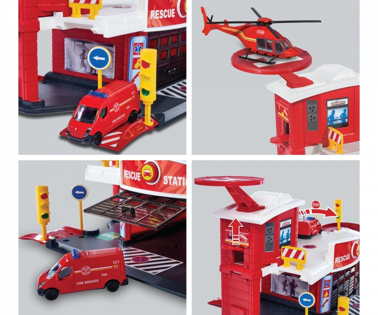 Majorette Creatix päästejaam on suurepärane täiendus igasse mängukogusse. Jaamal on kaks tasandit erinevateks mängustsenaariumiteks, sealhulgas heliplats ja stardiramp autodele. Lapsed saavad mängida päästjaid tänu komplektis olevatele liiklusmärkidele ja muule lisavarustusele.