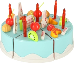 See värvikas sinise sünnipäevakoogiga komplekt on ideaalne peomängudeks ja lastesöögituppa. Kook koosneb 6 tükist, mis on ühendatud takjapaelaga, nii et lapsed saavad seda komplektis oleva plastnoaga lõigata, ümber paigutada ja uuesti kaunistada. Rikas lisavarustus – küünaldest ja puuviljadest kuni armsate jänkude ja kirjani „Happy Birthday“ – toetab loovust ja fantaasia arengut.