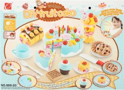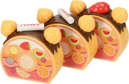 Kuus koogitükki on ühendatud takjapaelaga – lapsed lõikavad need hõlpsalt plastnoaga lahti ja panevad uuesti kokku. Ideaalne peenmotoorika treenimiseks ja realistseks mänguks.