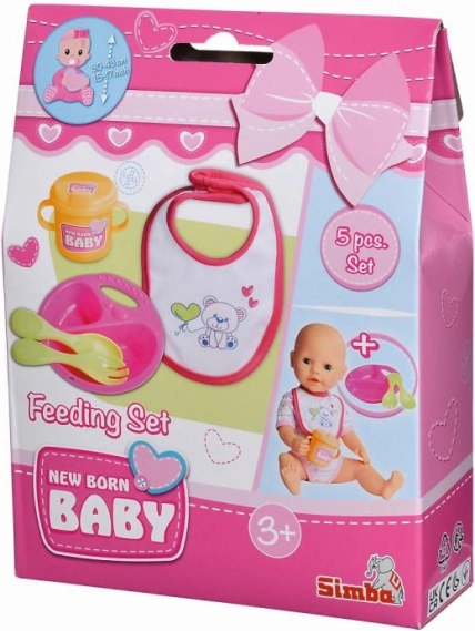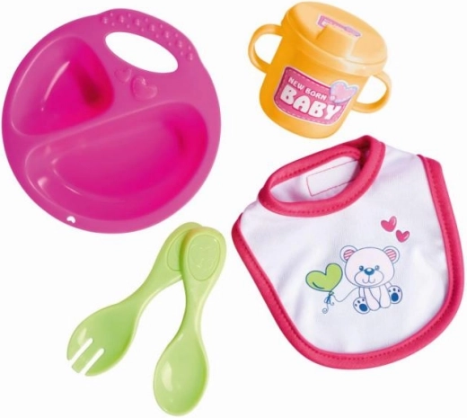 Armas nuku söögitarvete komplekt NEW BORN BABY sisaldab 5 osa – taldrik, teelusikas, kahvel, tass ja pudipõll – nukkudele 30–43 cm. Kerge ja kergesti puhastatav komplekt on ideaalne toitmismänguks ja peenmotoorika arendamiseks.