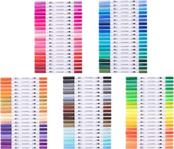 Avasta loomiserõõm 100 kaheotsalise markeriga, mis pakuvad täielikku värviskaalat hand lettering’u, visandamise, bullet journali, teksti esiletõstmise ja kooliprojektide jaoks. Iga marker ühendab täpse 0,4 mm lineri kontuuride ja teksti jaoks ning laiema 1–2 mm otsa kiireks värvimiseks.