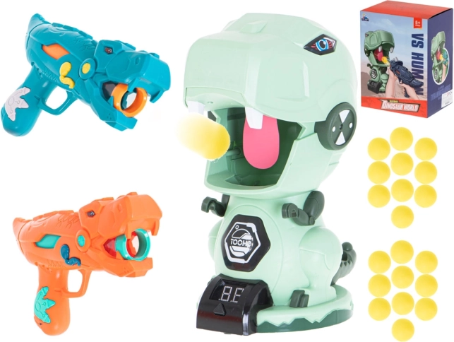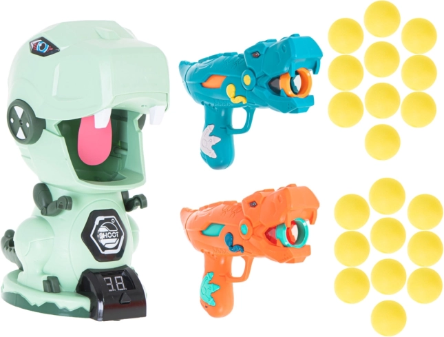 Kaks stiilset dinosaurusekujundusega püstolit võimaldavad tulistada pehmeid vahtkuule ohutult ja tõhusalt. Ideaalne kahemängijamängudeks ja võistlusteks.
