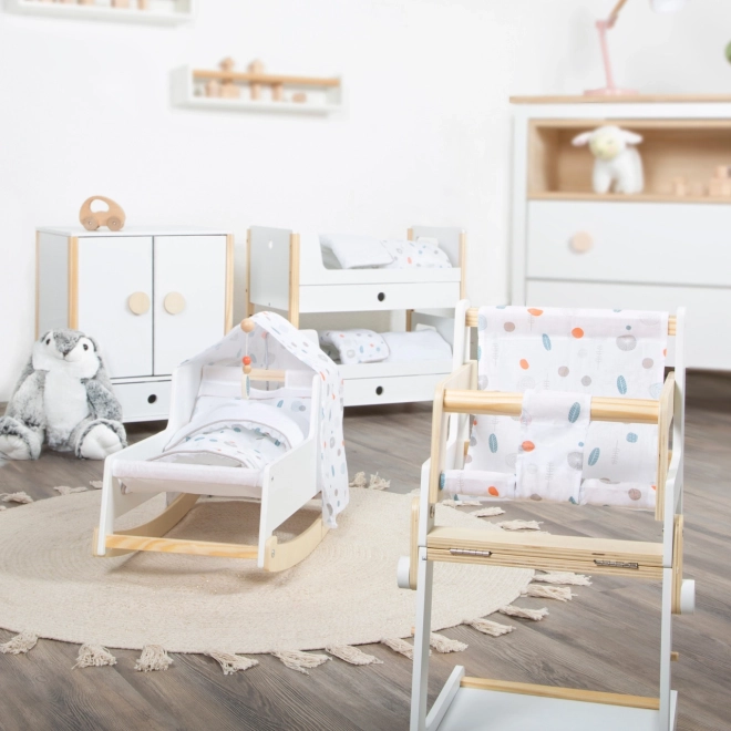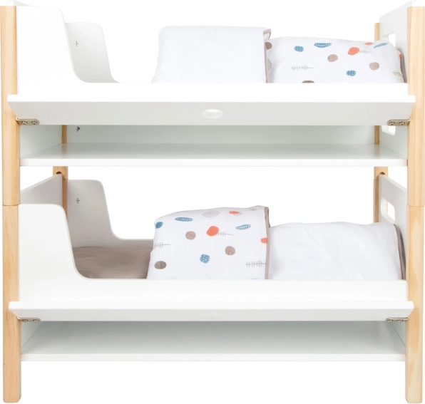 Komplekti kuuluvad neutraalsetes toonides voodiriided ja oversized‑tekid, mis mahutavad mugavalt nukud või kaisuloomad kuni 46 cm. Iga voodi all olevad sahtlid pakuvad nutikat hoiustust rõivastele ja väikestele lisatarvikutele. Ideaalne täiendus lastetuppa või stiilsesse nurgakesse nukkudele Little Button kollektsioonis.
