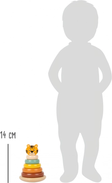 See muljetavaldav ladumistorn tiigriteemaga on mitte vaid kaunis mänguasi, vaid ka suurepärane vahend laste oskuste arendamiseks. Komplekt koosneb 7 tükist, sh alusest ja kuuest värvilisest rõngast, mida saab laduda varrele, mille otsas on tiigripea. Nii harjutavad lapsed käe-silma koostööd ja kujundite mõistmist.
