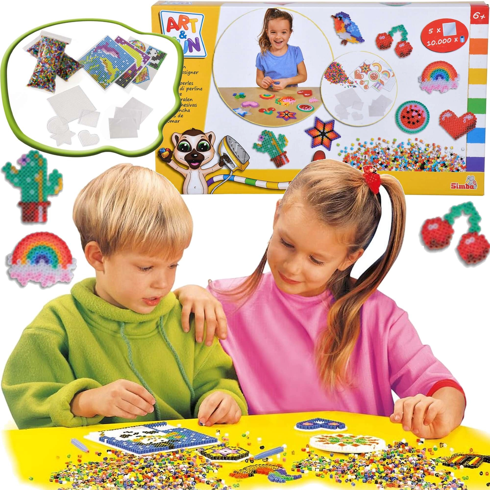 Avasta pikselkunsti maailm SIMBA ART & FUN triikimispärlite komplektiga. Pakendis on 10 000 värvilist pärlit ja 5 korduvkasutatavat alusplaati, millele saad laduda meelepäraseid motiive. Kui katad kujundi küpsetuspaberiga ja täiskasvanu triigib selle üle, ühinevad pärlid ja kõvastuvad püsivaks dekoratsiooniks.
