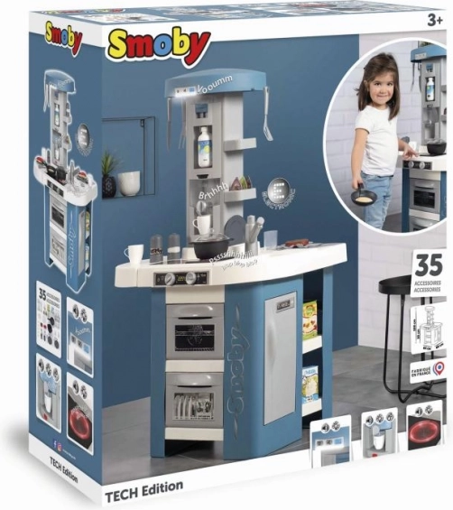Tere tulemast kokkamismängude maailma Smoby Studio Tech Edition köögiga. See kompaktne ja stabiilne köök pakub avarat mänguala, mis võimaldab lastel avastada loovust toiduvalmistamises igast küljest.