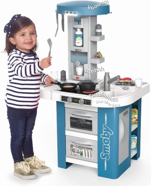 Lisavarustus hõlmab ahju, nõudepesumasinat, külmikut, kraanikaussi voolava veega, soodaveeautomaati ning rohkelt panipaiku. Komplektis on 35 lõbusat lisatarvikut, sealhulgas köögitarbed, mis täiendavad autentset kokkamismängu kogemust.