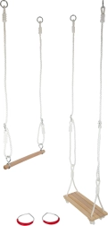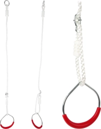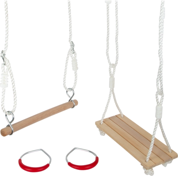 Tänu vastupidavatele sünteetilistele köitele koos köiesõlme kaheksaga seadistad iga lapsele sobiva kõrguse. Kaks köiekomplekti võimaldavad kaht elementi korraga üles riputada ja kasutada. Lihtne riputussüsteem ning tugev puidu, metalli ja kvaliteetsete plastide kooslus tagavad turvalise ja stabiilse kasutuse.