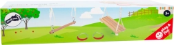 See multifunktsionaalne komplekt väikestele akrobaatidele toob aktiivse liikumise ja rõõmu nii aeda kui ka lastetuppa. Klassikaline puidust kiik, ripprööbas ja võimlemisrõngad mugavate plastist käepidemetega arendavad koordinatsiooni, jõudu ja tasakaalu.