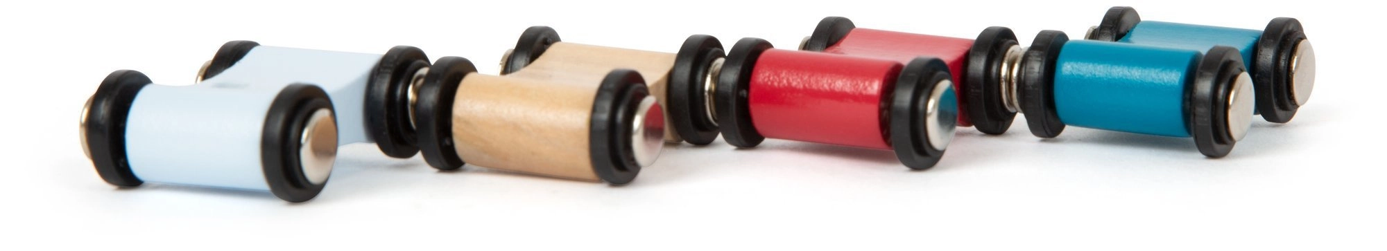 Pakendist leiad täieliku raja ja 4 väikest autot eri värvides. Ajatu loodusliku ilmega disain koos värviliste triipudega sobitub kergesti lastetuppa ning toetab keskendumist ja avastamisrõõmu.