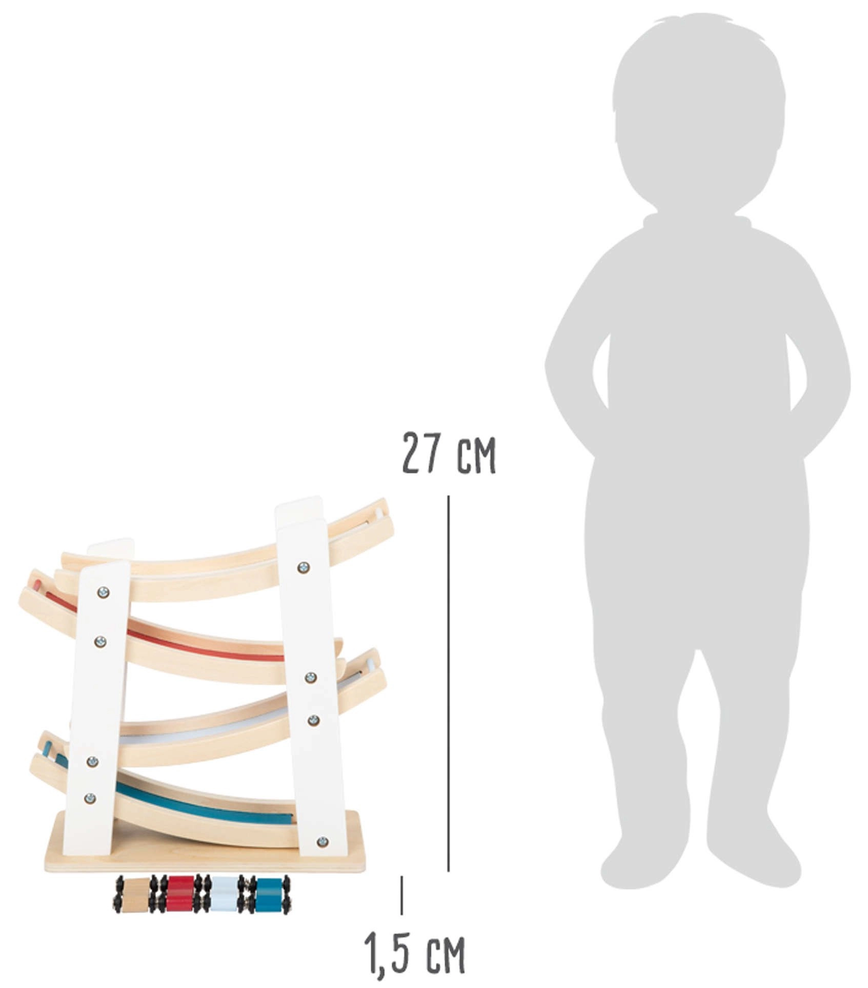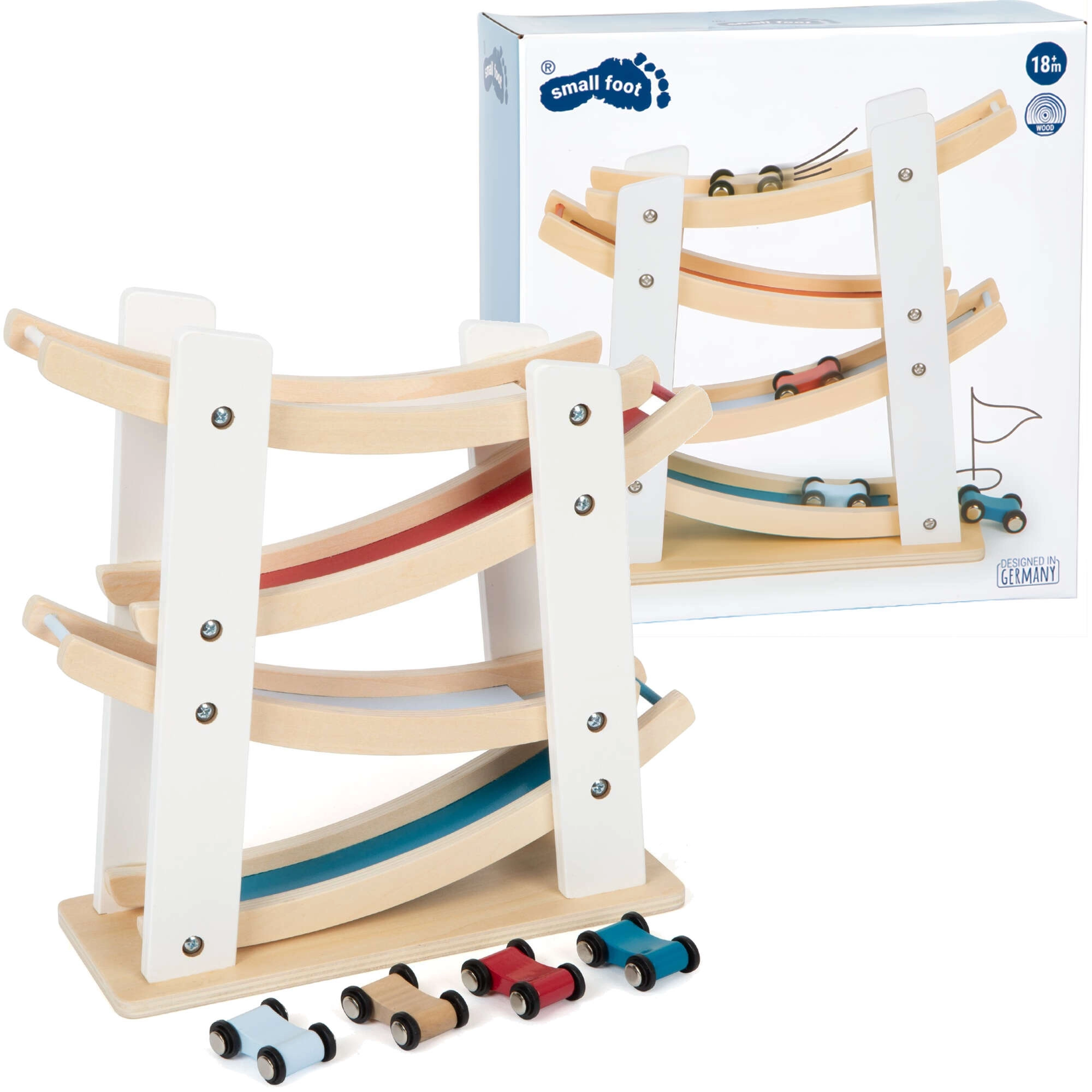 Avasta pisipõnnidele mõeldud lõbu koos Small Footi puidust võidusõiduraja ja autodega. Tugev looduslikust puidust konstruktsioon, neli värvilist autot ja sujuv liuglemine kaskaadrampidel arendavad peenmotoorikat, käe-silma koordinatsiooni ning põhjuse-tagajärje mõistmist. Ideaalne mänguasi alates 18. elukuust igapäevaseks loominguliseks mänguks.