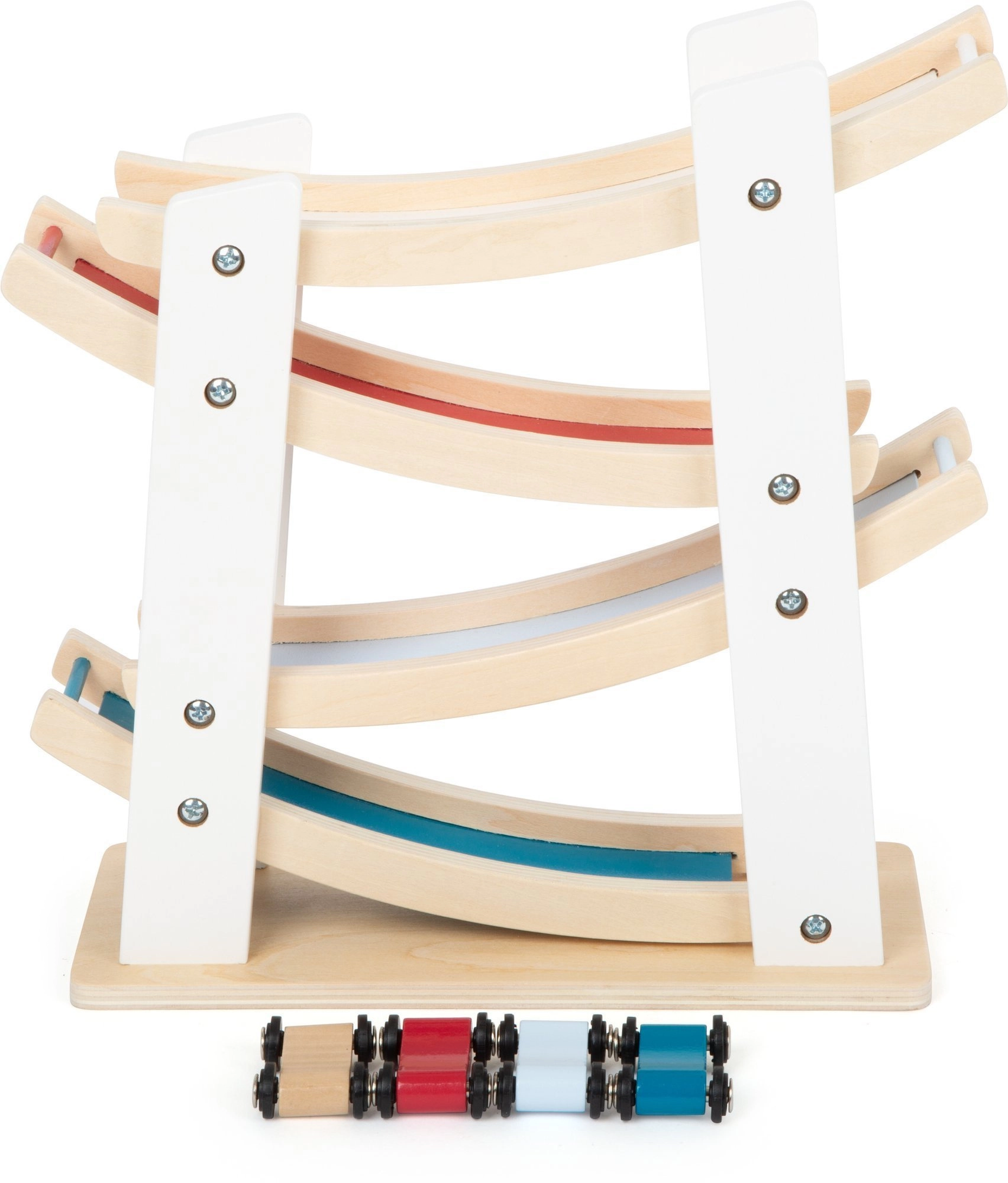 See kvaliteetne puidust rada pakub lihtsat põhimõtet, mida lapsed armastavad: aseta auto ülemisele platvormile ja vaata, kuidas see hoogsalt mööda kurve alla libiseb. Stabiilne alus ja siledad pinnad tagavad turvalise ning vastupidava kasutuse.