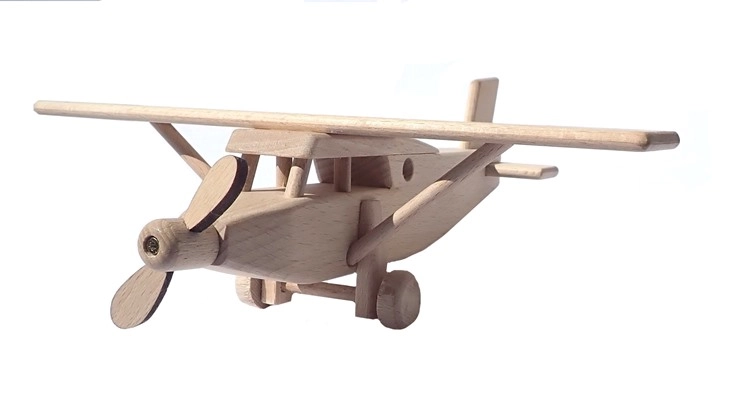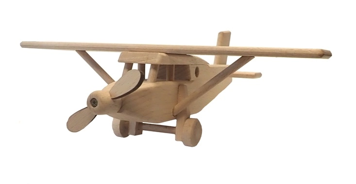 See aus puidust lennukimudel on valmistatud täispöögist ja jäetud loodusliku väljanägemisega – üksnes vahaga töödeldud ja poleeritud, ilma keemilise töötlemise ja värvideta. Tänu täpsele teostusele ja siledale pinnale sobitub see hästi lapse kätte ning toetab kujutlusvõime ja peenmotoorika arengut.