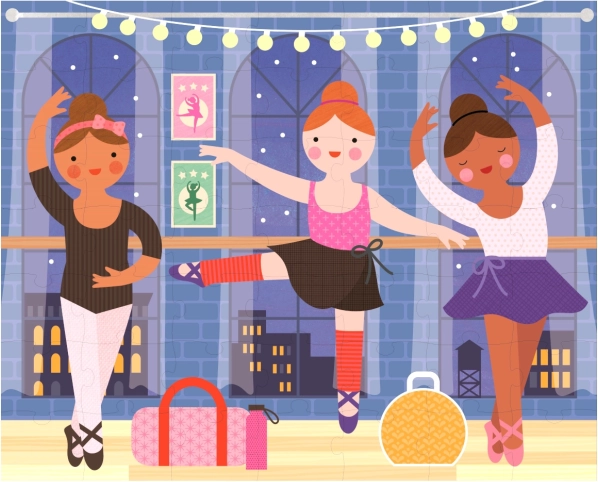 Üks pusle, kaks kaunist balleti stseeni. Lapsed saavad motiive vaheldada ja kokku panna aina uusi pilte.
