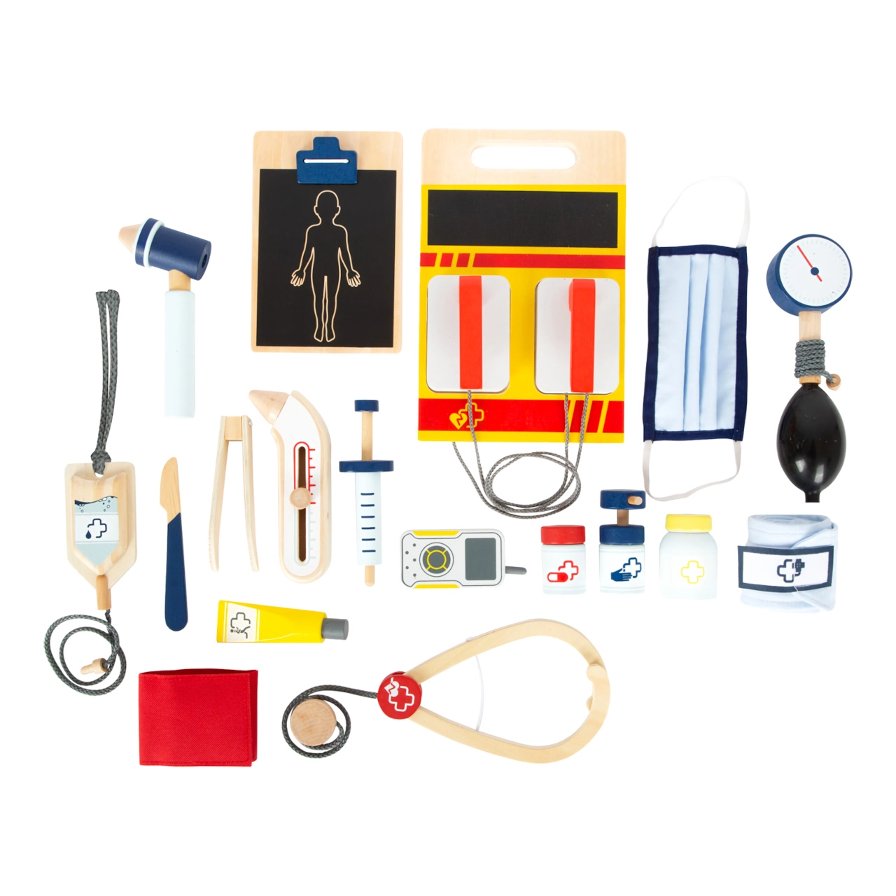 See päästja seljakott on ideaalne laste arstimänguks. Seest leiate puidust vahendid, nagu stetoskoop, termomeeter, suurendusklaasiga otoskoop ja isegi defibrillaator. Lapsed saavad tundma õppida meditsiinivarustust ja harjutada päästetoimingute jäljendamist.