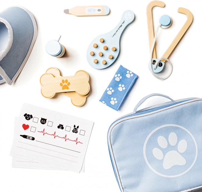 Komplektne veterinaarikohver võimaldab lastel hoolitseda kaisuloomade ja lemmikloomakujukeste eest nagu päris arst. Komplektist ei puudu tööriistad nagu stetoskoop, termomeeter, otoskoop, süstal, side, hari, kaitsekrae ja muud tarvikud. Kõik on paigutatud vastupidavasse tekstiilkotti käpajäljega, ideaalne kandmiseks ja hoiustamiseks.