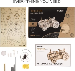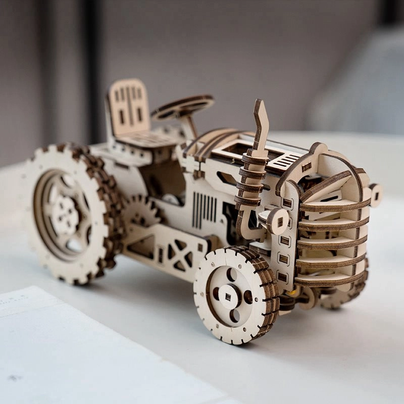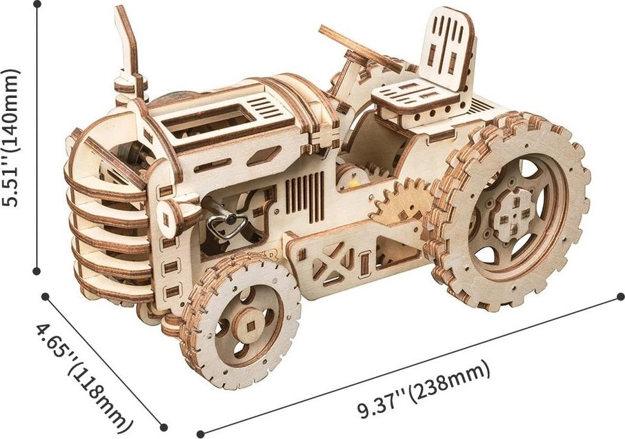 ROBOTIME Rokr toob teieni kaasahaarava 3D puidust traktoripusle realistlike detailidega. See mehaaniline mudel ei vaja patareisid – keerake mootorit võtmega ja vaadake, kuidas see ellu ärkab. Tänu rooli pööramisele saate muuta esirataste liikumissuunda, mis lisab interaktiivsust.