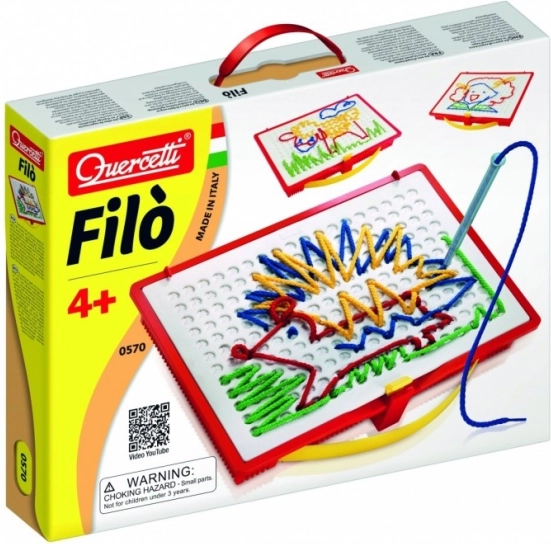 Avastage loova mängu võlu Quercetti Filò tikkimiskomplektiga, mis toetab laste fantaasiat ja peenmotoorikat. Spetsiaalsete pliiatsite abil saavad lapsed luua erinevaid pilte, lükates värvilisi nööre mängulaua avadesse, mis pakub rõõmu ja lõbu.
