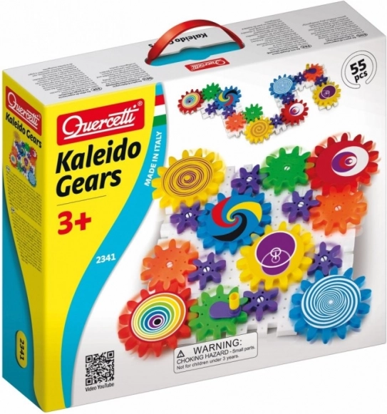 Quercetti Kaleido Gears komplekt koosneb perforatsiooniga plaatidest, telgedest, hammasratastest ning erinevate loomade ja puude kujukestest. Vända abil saab mehhanismi liikuma panna, mis võimaldab lastel avastada põhilisi mehaanilisi põhimõtteid ja õpib põhjus-tagajärg seoseid.