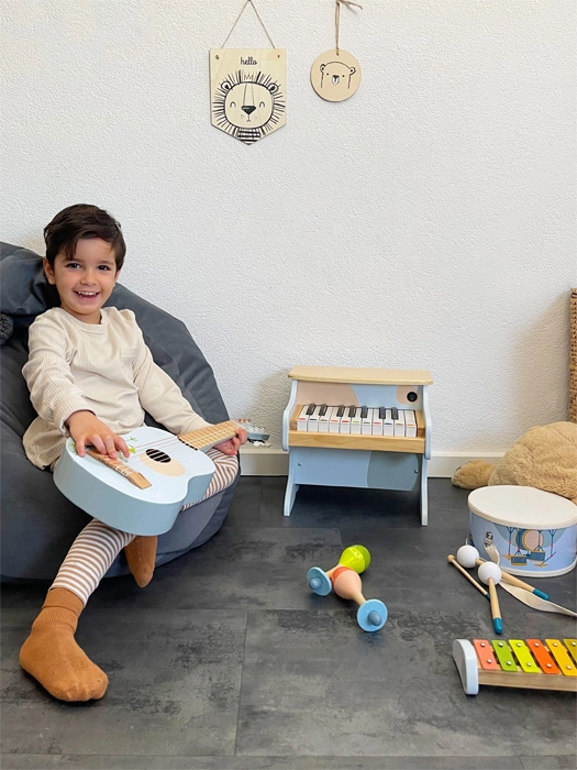 Käivita kodused kontserdid selle stiilse laste trummiga! Tänu reguleeritavale puuvillasest rihmale, vaiksetele pulkadele summutuskorkidega ja tugevale puidust konstruktsioonile on see ideaalne esimesteks sammudeks muusikamaailmas. Arendab rütmitunnet, käe-silma koordinatsiooni ning peenmotoorikat ja näeb ühtlasi lapse toas suurepärane välja.