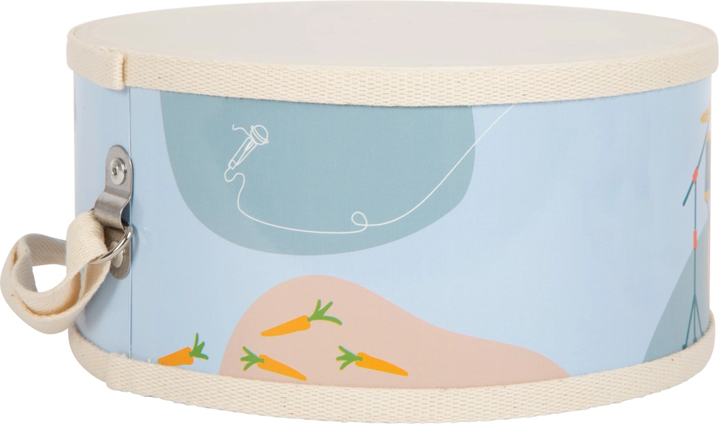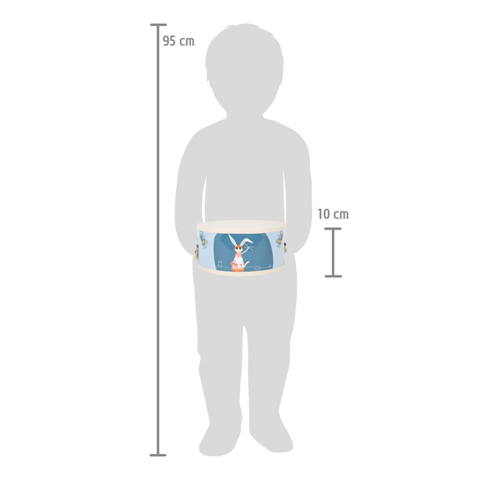 Tänu reguleeritavale ja eemaldatavale rihmale saavad lapsed trummi mugavalt õlale riputada ja mängida kõikjal. Summutavate otstega pulgad tagavad meeldivama, vaiksema heli – ideaalne lastetuppa ja reisile.