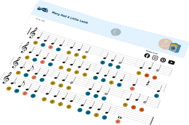 Tänu erivärvilistele klahvidele saavad lapsed hõlpsasti mängida oma esimesi laule vastavalt kaasasolevatele nootidele.