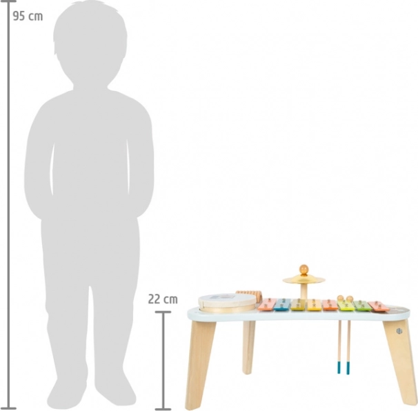 Small foot Groovy Beats muusikaline lauatase on läbimõeldud komplekt esimesteks muusikasammudeks. Tugev puidust konstruktsioon ja kolm stabiilset jalga võimaldavad lastel turvaliselt avastada erinevaid helisid – alates ksülofoni meloodilistest toonidest ja selgest taldrikukõlinast kuni eemaldatava trummi biitideni. Värvikoodiga klahvid lihtsustavad õppimist ja toetavad kiireid eduelamusi.