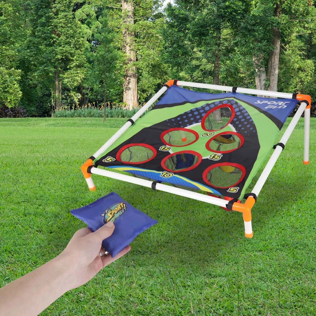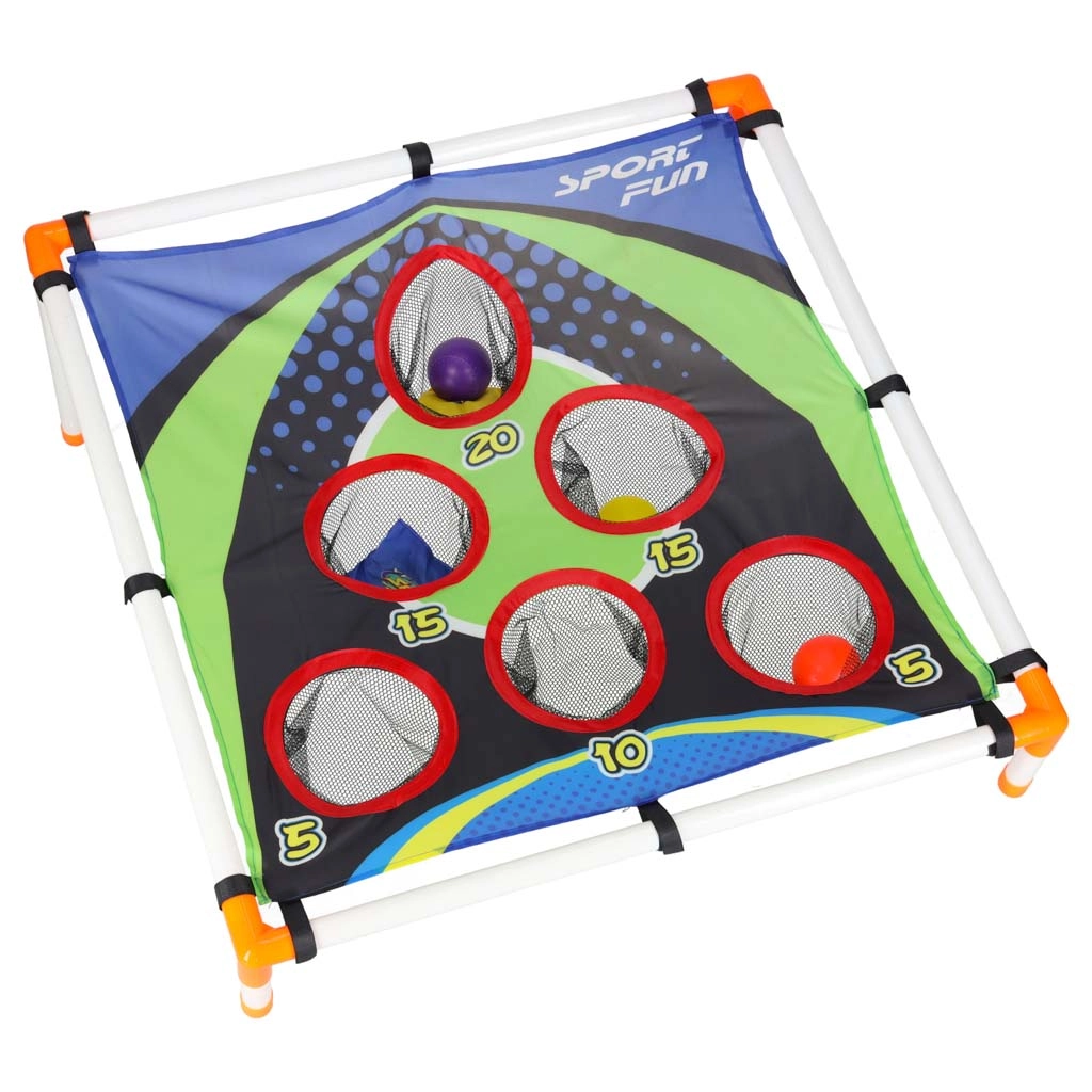 Lõbus viskemäng lastele, mis arendab käe-silma koordinatsiooni, täpsust ja kiireid reaktsioone. Kerge raam kaldu märklauaga ja nummerdatud avadega pakub eri punktiväljakutseid. Sobib nii aeda kui ka siseruumi, lihtne kokku panna ja mugav kaasas kanda. Komplektis on viskekotikesed ja plastpallid.
