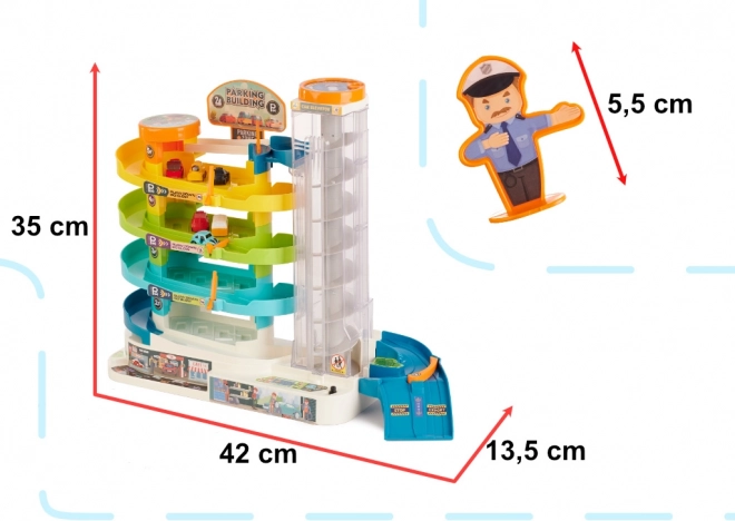 Avastage multifunktsionaalne parklagaraaž, mis muudab lastetoa elavaks linnaks. Neli avarat korrust pakuvad rohkelt parkimiskohti, lift viib autod kuni tipuni ning lisaks on ka heliport lemmikkopteri jaoks. Elektrilist režiimi täiendavad rõõmsad tuled ja meloodiad, vajadusel saab lifti juhtida käsitsi.