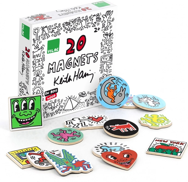 Too oma koju popkunsti mänguline energia! 20-osaline VILACi puidust magnetite komplekt motiividega KEITH HARING pakub äratuntavat disaini, kirkad värvid ja loomisrõõmu. Tänu tugevale puidust teostusele ja läikivale trükile sobivad magnetid igapäevaseks kasutamiseks külmkapil, magnettahvlil või riiulitel.