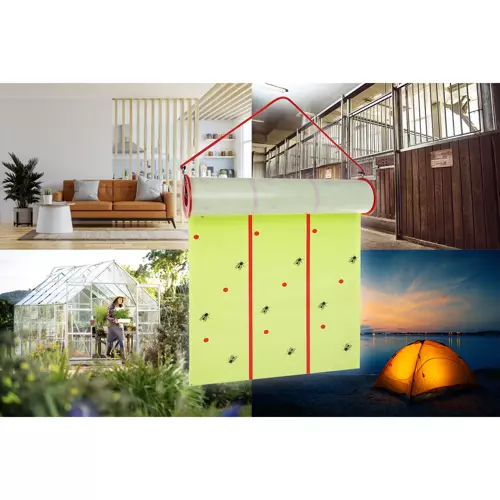 10 meetri pikkune kärbsepüünis rullis on suurepärane alternatiiv kahjuritõrjeks erinevates keskkondades ilma kemikaale kasutamata. Selle silmatorkav kollane värv punaste joontega suurendab nähtavust ja tõhusust. Tänu ohutule ja keskkonnasõbralikule ülesehitusele sobib toode kasutamiseks nii siseruumides kui ka välitingimustes.