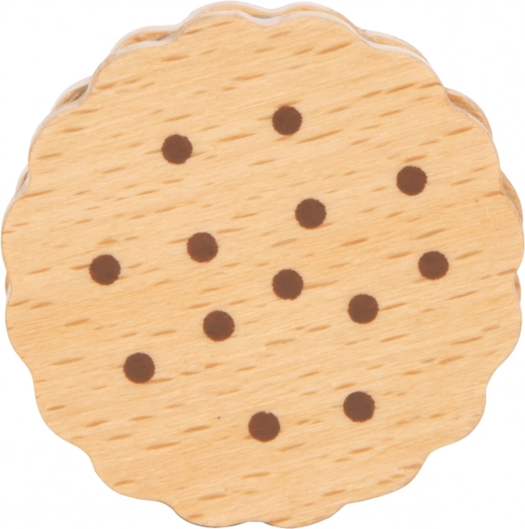 Viis vastupidavat puidust küpsist on ideaalne täiendus laste mängudesse. Need mitte ainult ei toeta loovust ja kujutlusmängu, vaid aitavad tänu oma looduslikule ja realistlikule tekstuurile arendada ka motoorseid oskusi. Igal küpsisel on šokolaaditäidis ning detailid köidavad laste tähelepanu.
