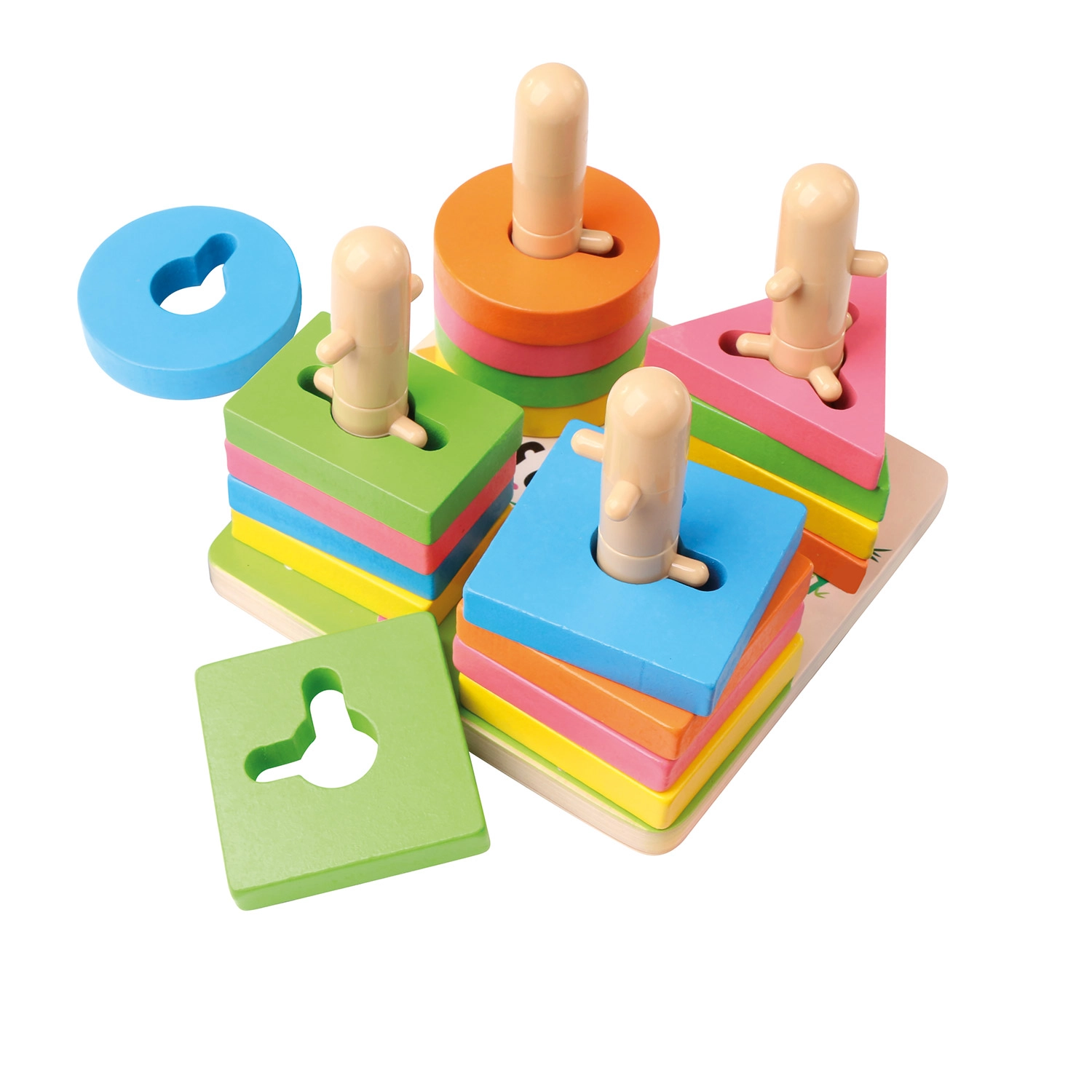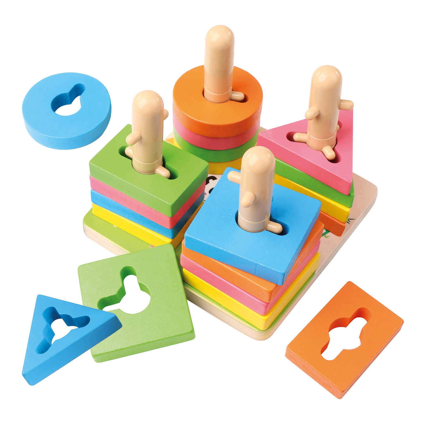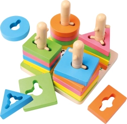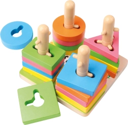 See kvaliteetne puidust lülimismäng sisaldab 21 värvilist tükki ja stabiilset alust tappidega. Tänu nutikalt kujundatud avadele ja postidele harjutavad lapsed kujundite sobitamist, värvide eristamist ja ruumitaju. Kompaktsed mõõtmed 15 × 11,5 × 15 cm võimaldavad lihtsat hoiustamist ning mängimist laual või matil.