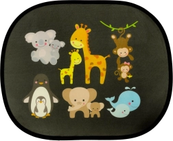 Armas staatiline päikesesirm auto külgakendele komplektis 2 tk tagab lastele ja täiskasvanutele mugava ja turvalise sõidu. Poolläbipaistev võrk värvilise loomamustriga vähendab tõhusalt pimestamist, aitab blokeerida UV-kiirgust ja piirab sõitjateruumi ülekuumenemist. Paigaldus toimub ilma liimi ja iminappadeta – piisab, kui asetada sirm puhtale ja kuivale klaasile.